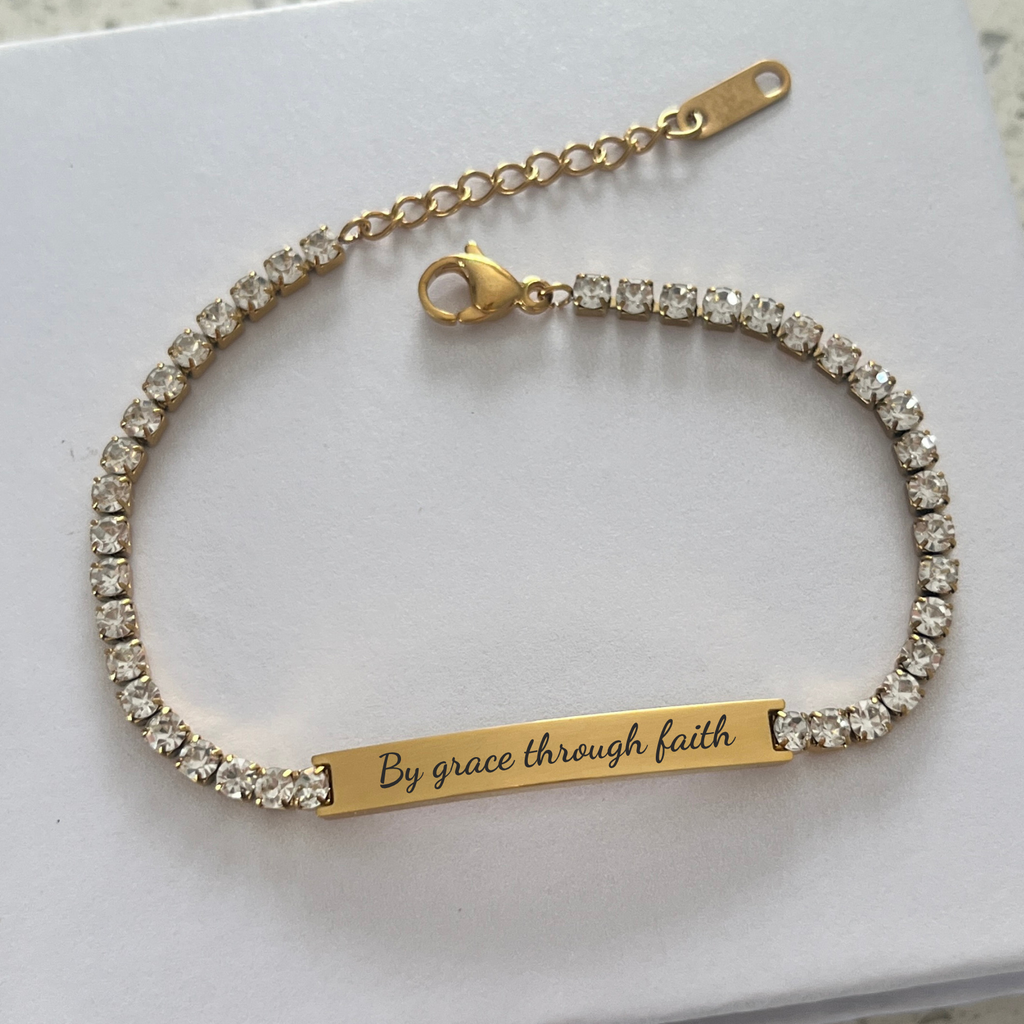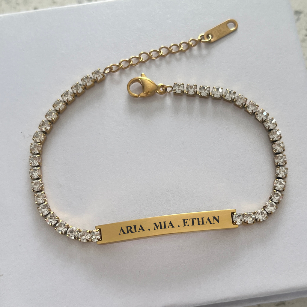 Isabella Personalized Stunning CZ Stones Tennis Bracelet, Gold Stainless Steel, Adjustable Size