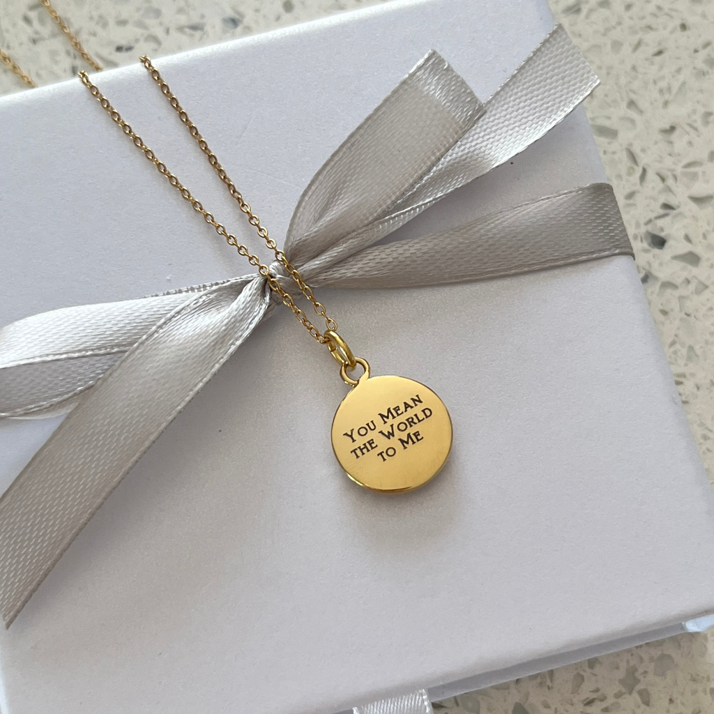 Worldy Ladie's Personalized World Disc Necklace, Gold Stainless Steel (READY IN 3 DAYS!)